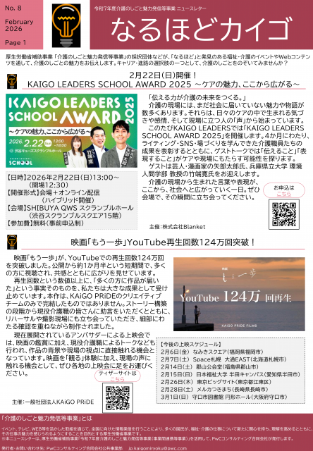 厚生労働省補助事業「介護のしごと魅力発信当事業」の一環で行われるイベントやWebサイト・動画コンテンツなどについて紹介するニュースレター(2月号)が発行されましたのでお知らせいたします。